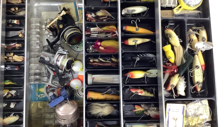 Hooks, sinkers, line, lures dips, and much more.